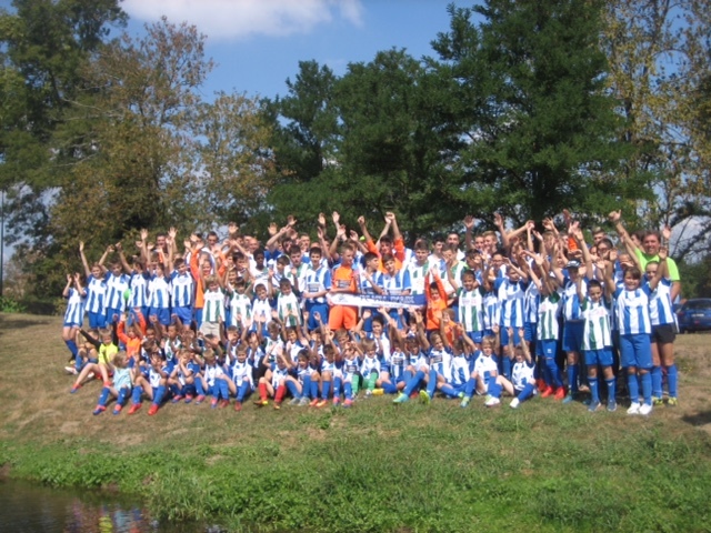 TOUT LES LICENCIES PRESENTS SE DIRIGEAIENT VERS L'AIX POUR UNE MAGNIFIQUE PHOTO DE GROUPE SOUS LES COULEURS DU FC VAL D'AIX.