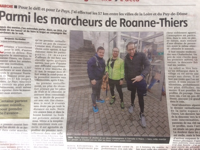 C'EST AVEC BEAUCOUP DE COURAGE, DE CAPACITES PHYSIQUES ET MORALES QUE BENJAMIN, UN DE NOS JOUEURS SENIORS A REUSSI A PARCOURIR LA MARCHE SEMI NOCTURNE ROANNE THIERS SOIT PRES DE 57 KM.